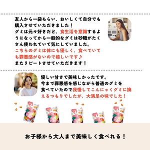 子供にも安心して食べさせられる。そんなおやつを作りたい!の想いでできたこんにゃくグミです。原材料はたった3つのみで、こんにゃくを主体に、リンゴ果汁と天然甘味料のエリスリトールで優しい甘みを出し、白砂糖、ゼラチン、光沢剤などは一切使ってません。