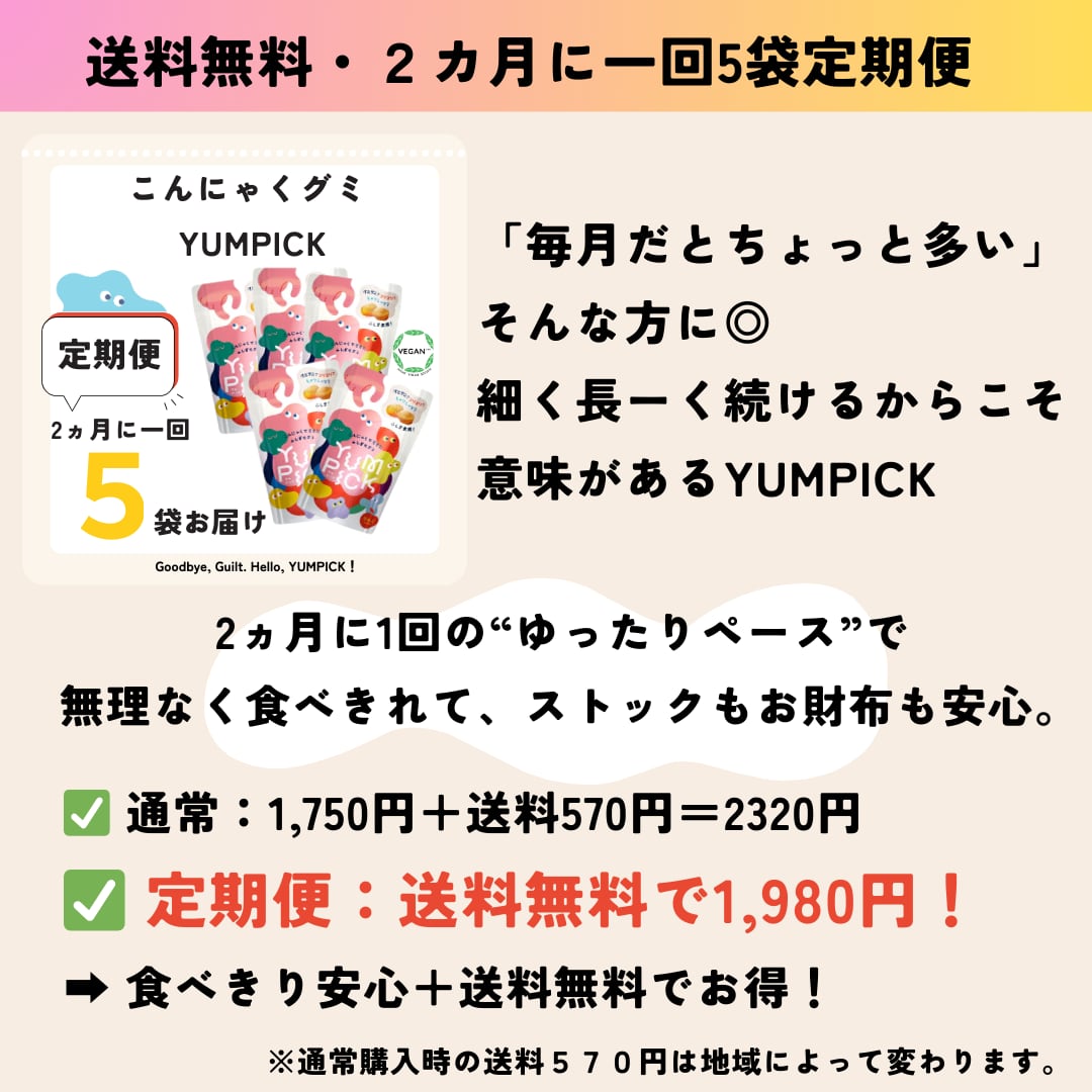 【送料無料】ゆったりペース定期便 2ヵ月1回YUMPICK 5袋|食べきりサイズ