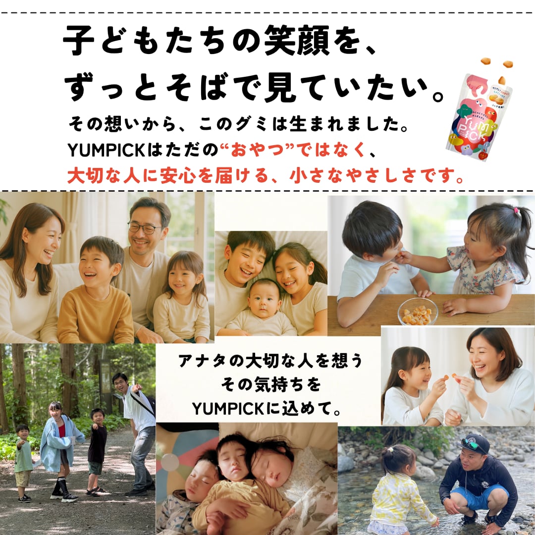 YUMPICKは、大切な人に「安心して食べさせられる」グミです。