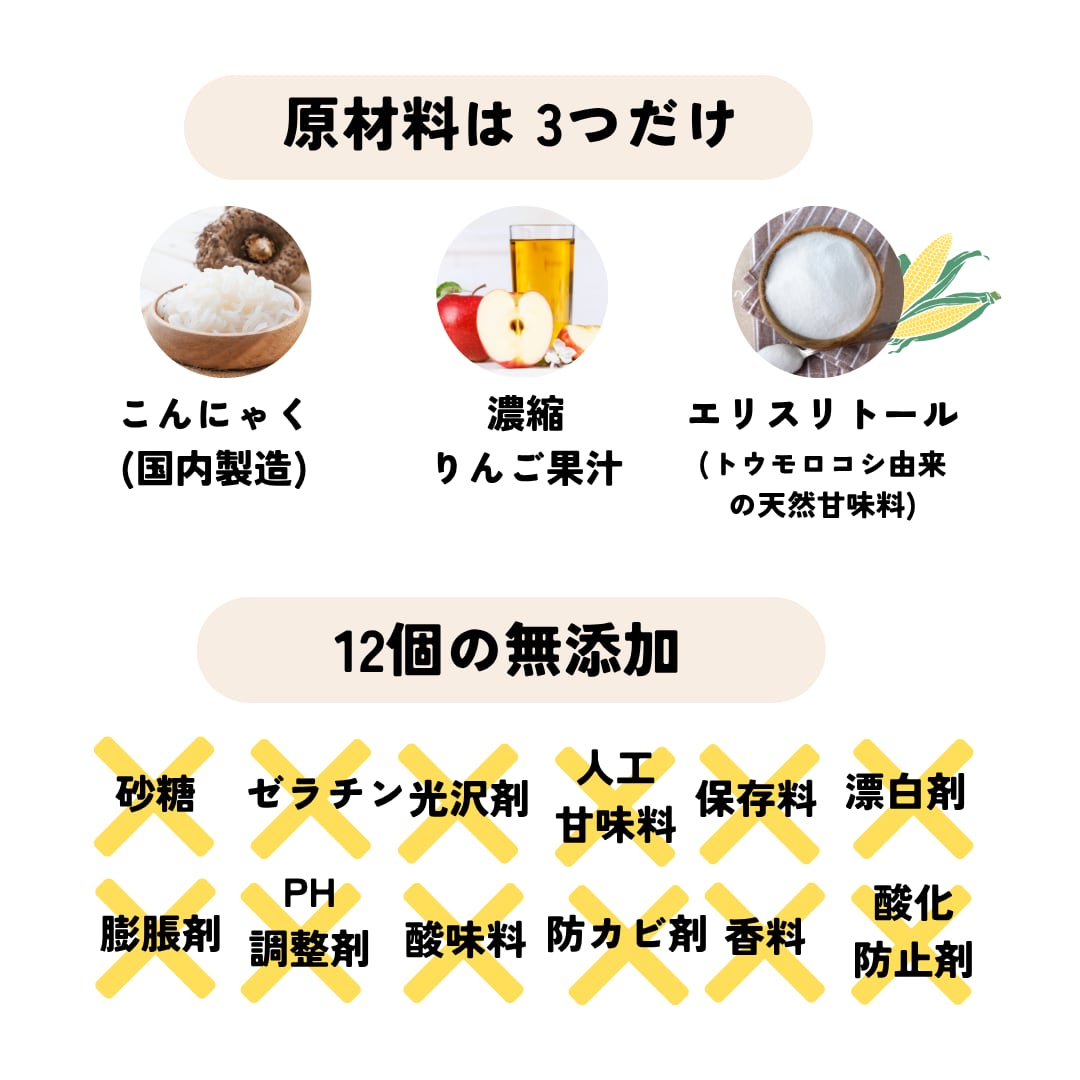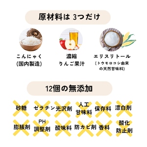 原材料:こんにゃく(国内製造)、濃縮りんご果汁、エリスリトール