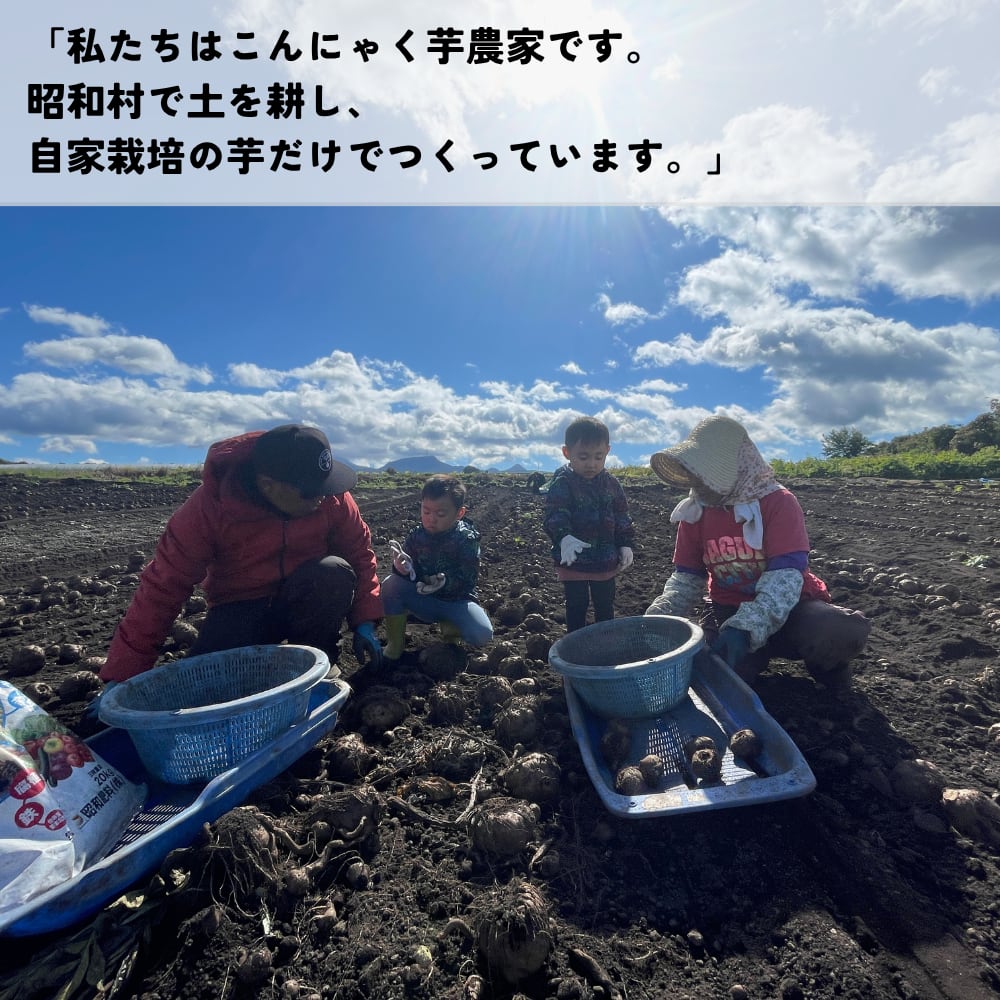 昭和村の畑で育てた「自家栽培のこんにゃく芋」だけを使用。